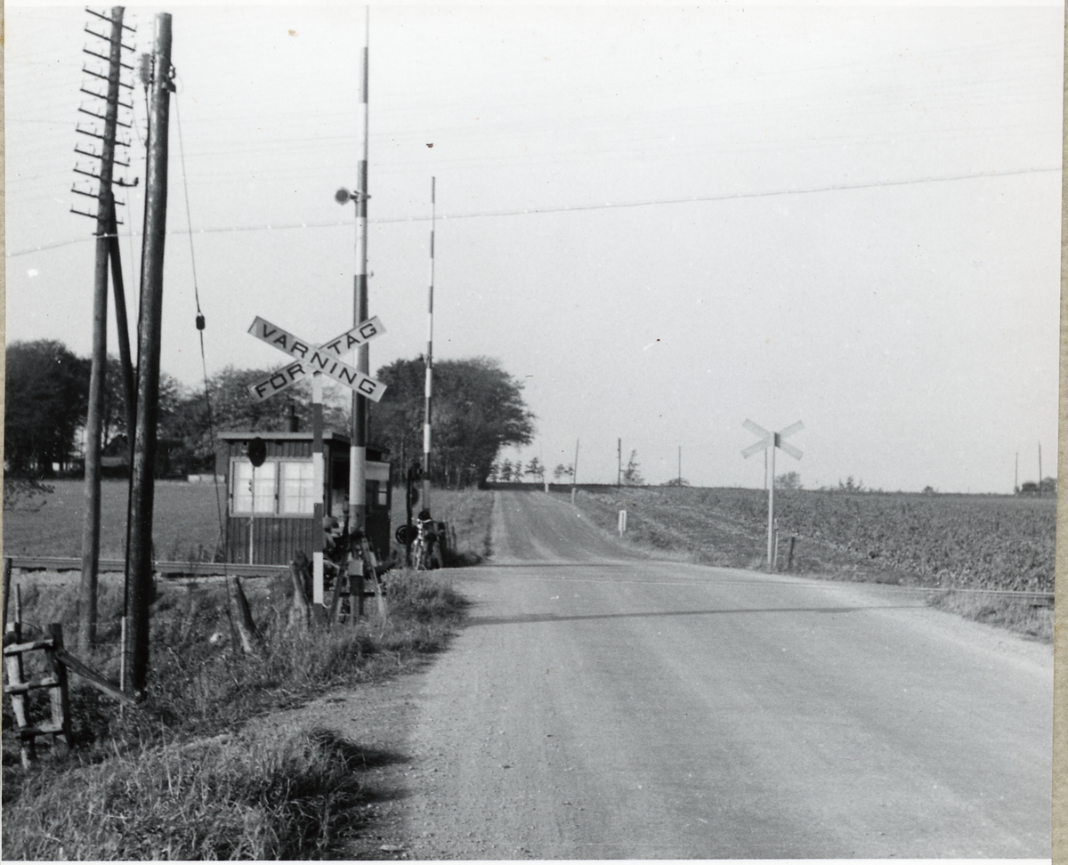 Titel: Järnvägsövergång med vaktkur vid Bolleröd på linjen mellan Löberöd och Askeröd.