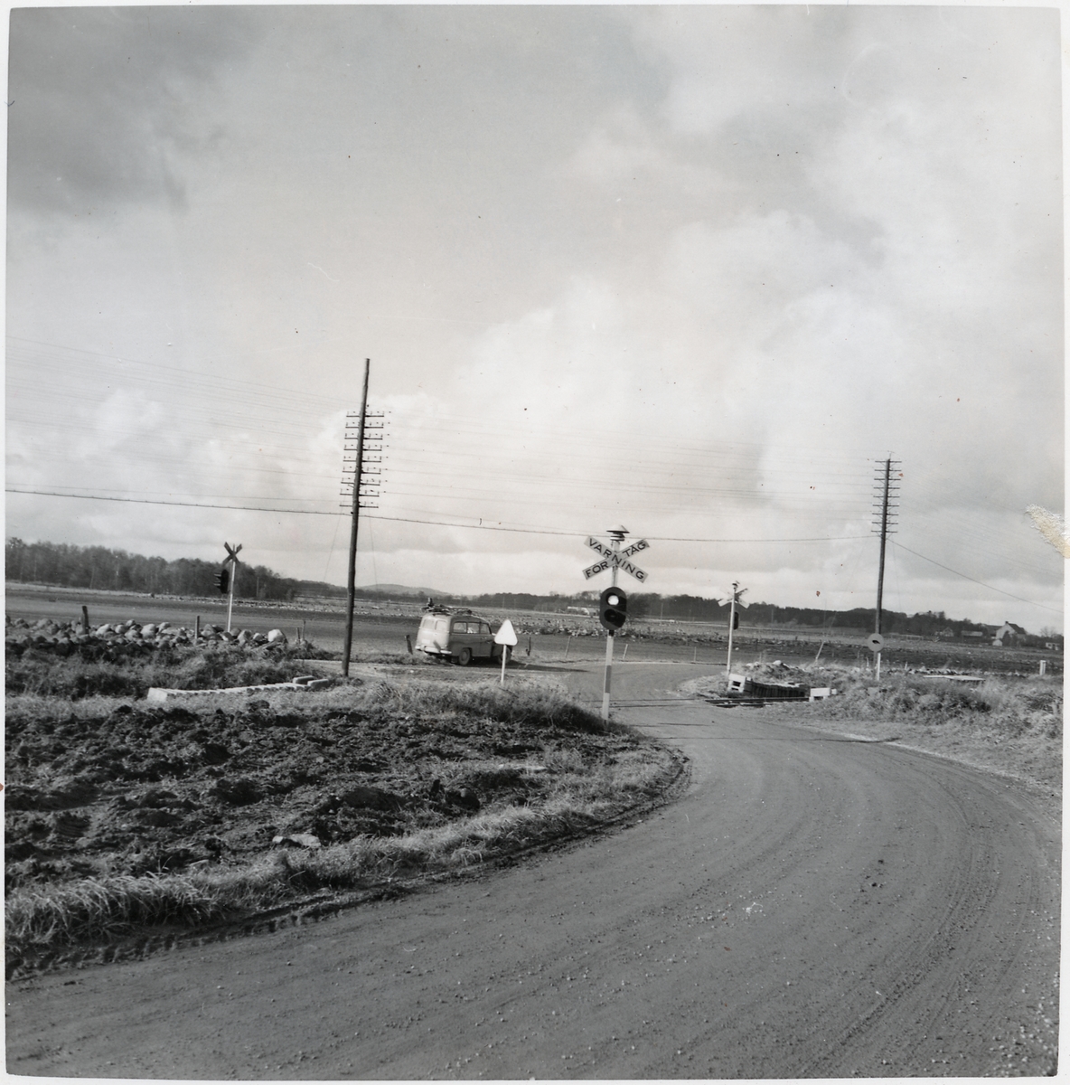 Titel: Järnvägsövergång vid Björkeröd på linjen mellan Klasaröd och Lövestad.