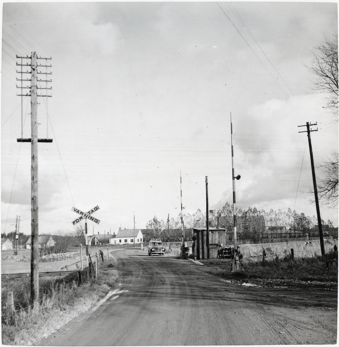 Titel: Järnvägsövergång med vaktkur vid Heingetorp på linjen mellan Klasaröd-Lövestad.