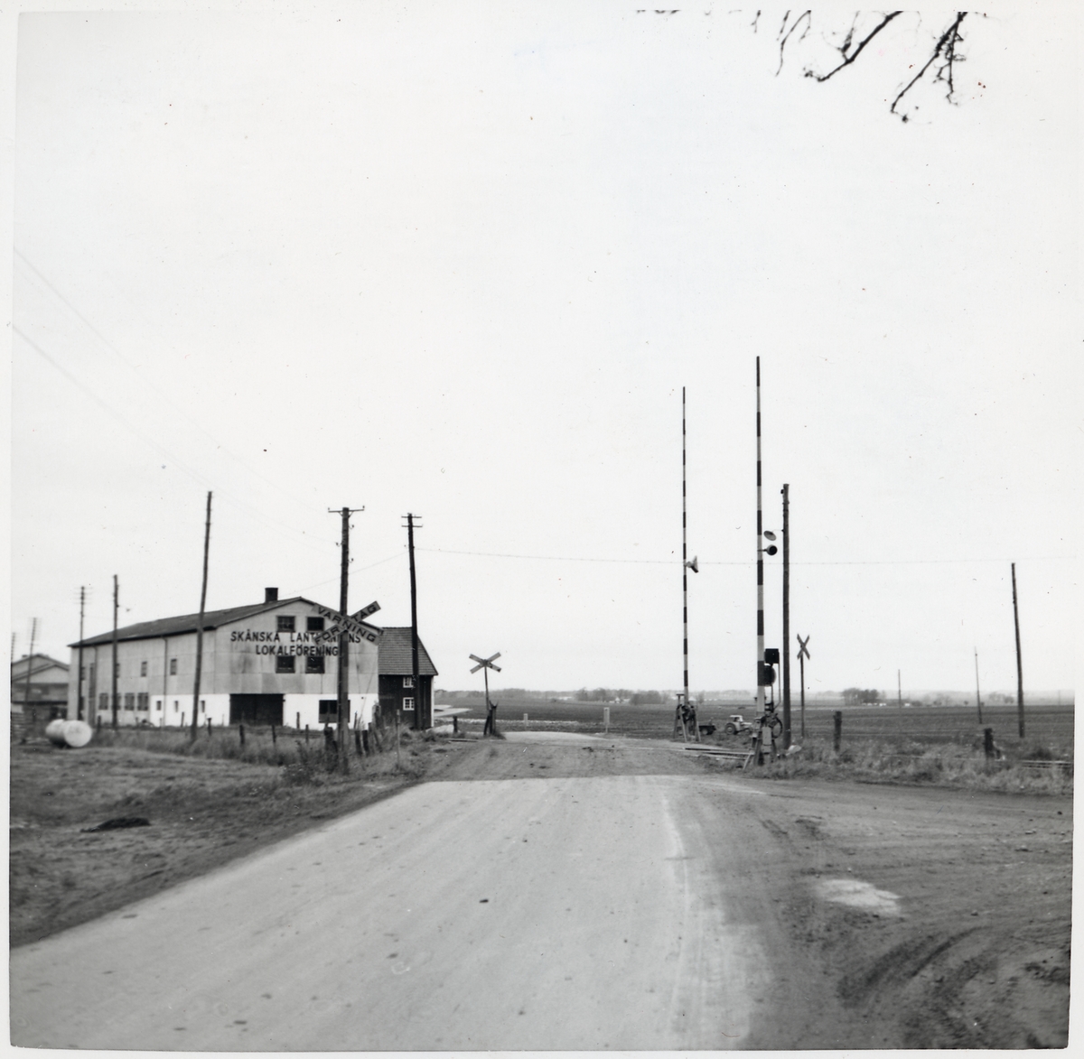 Järnvägsövergång vid norra infarten till Hammenhög station, på sträckan mellan Gärsnäs och Borrby.