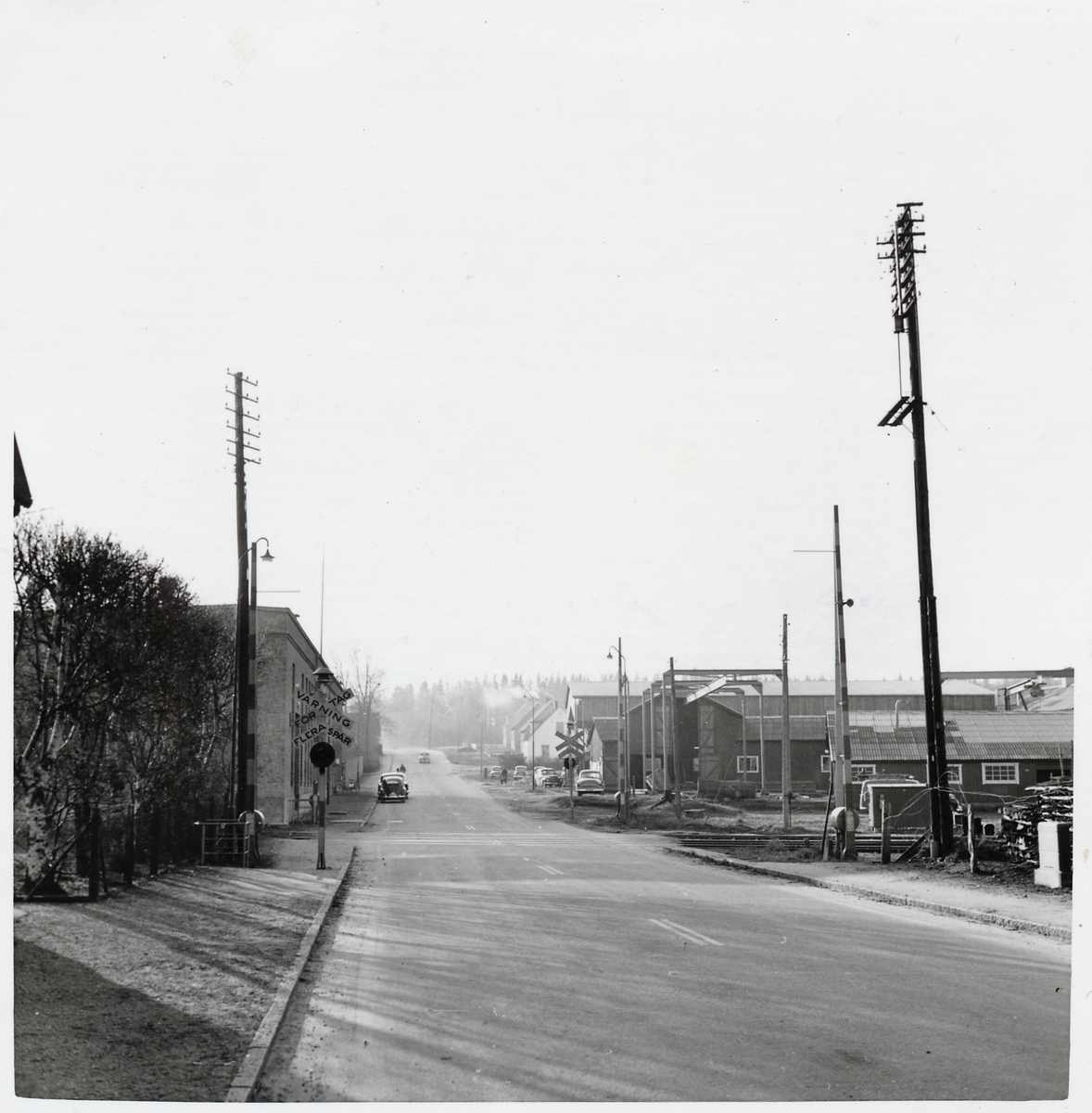 Titel: Järnvägsövergång vid Södergatan vid Sjöbo station, på sträckan mellan Veberöd och Eriksdal.
