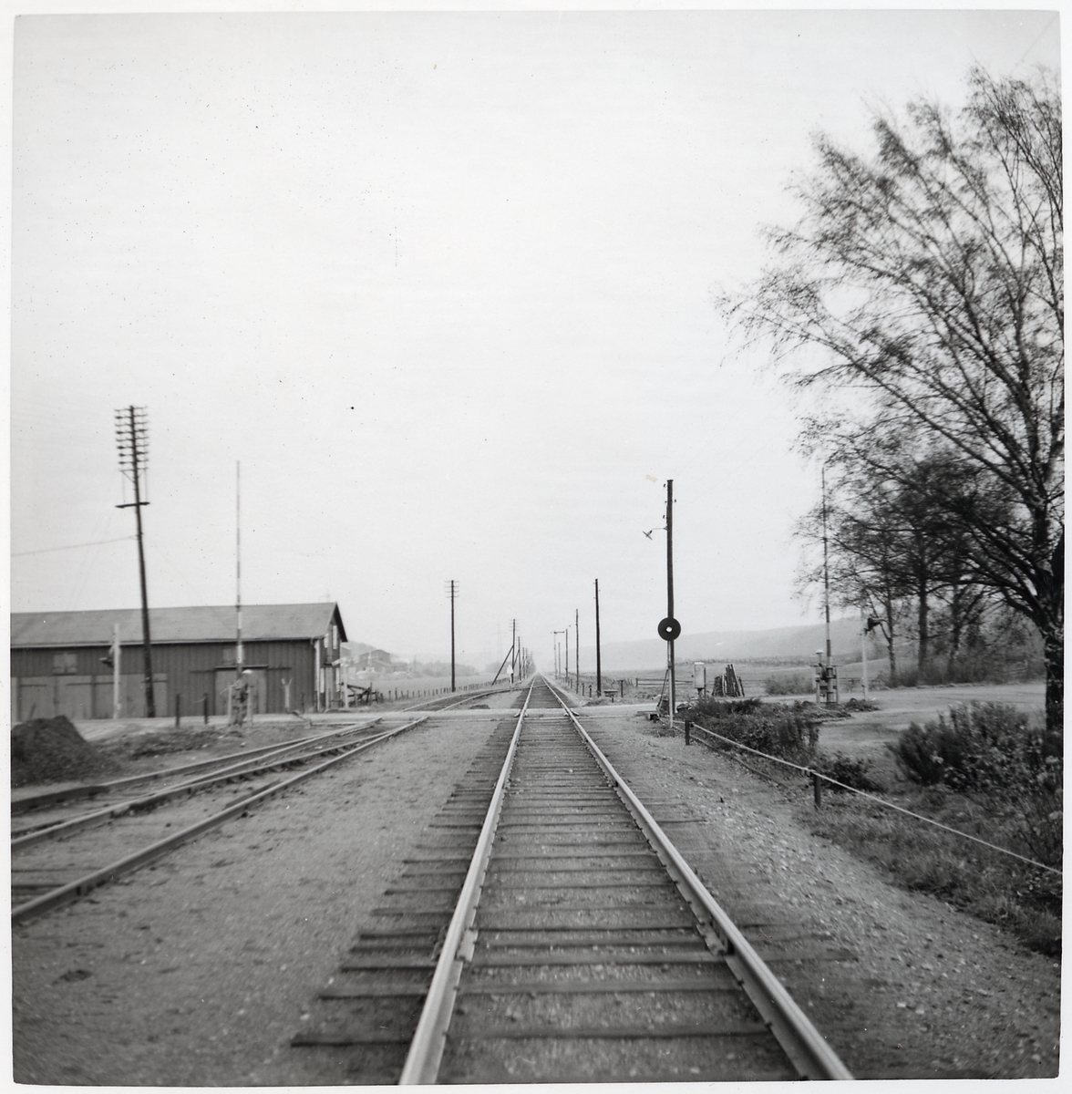 Titel: Järnvägsövergång vid Eriksdal station, på sträckan mellan Sjöbo och Tomelilla.