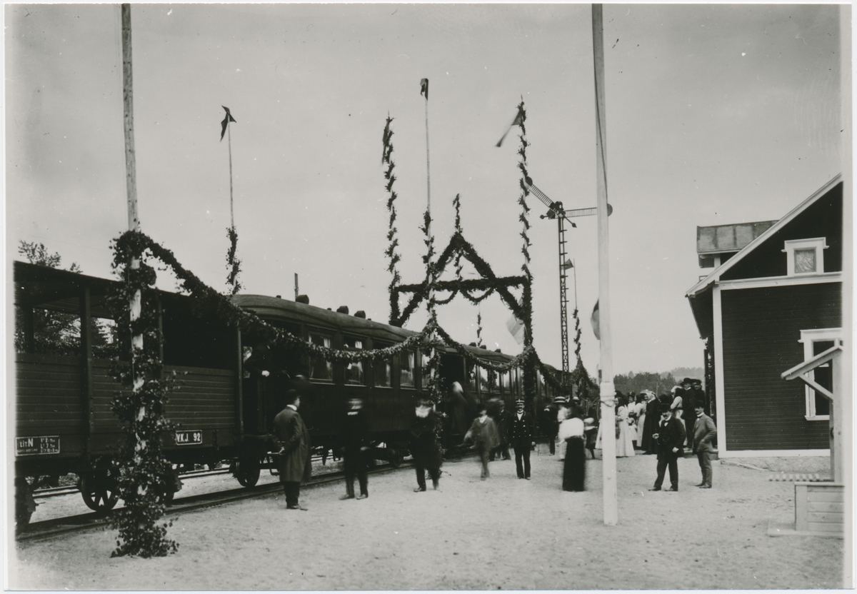 Stationen öppnad 1911-12-23. Tvåvånings stationshus i trä. Invigningsceremoni skedde ett tag senare 1912-06-11.