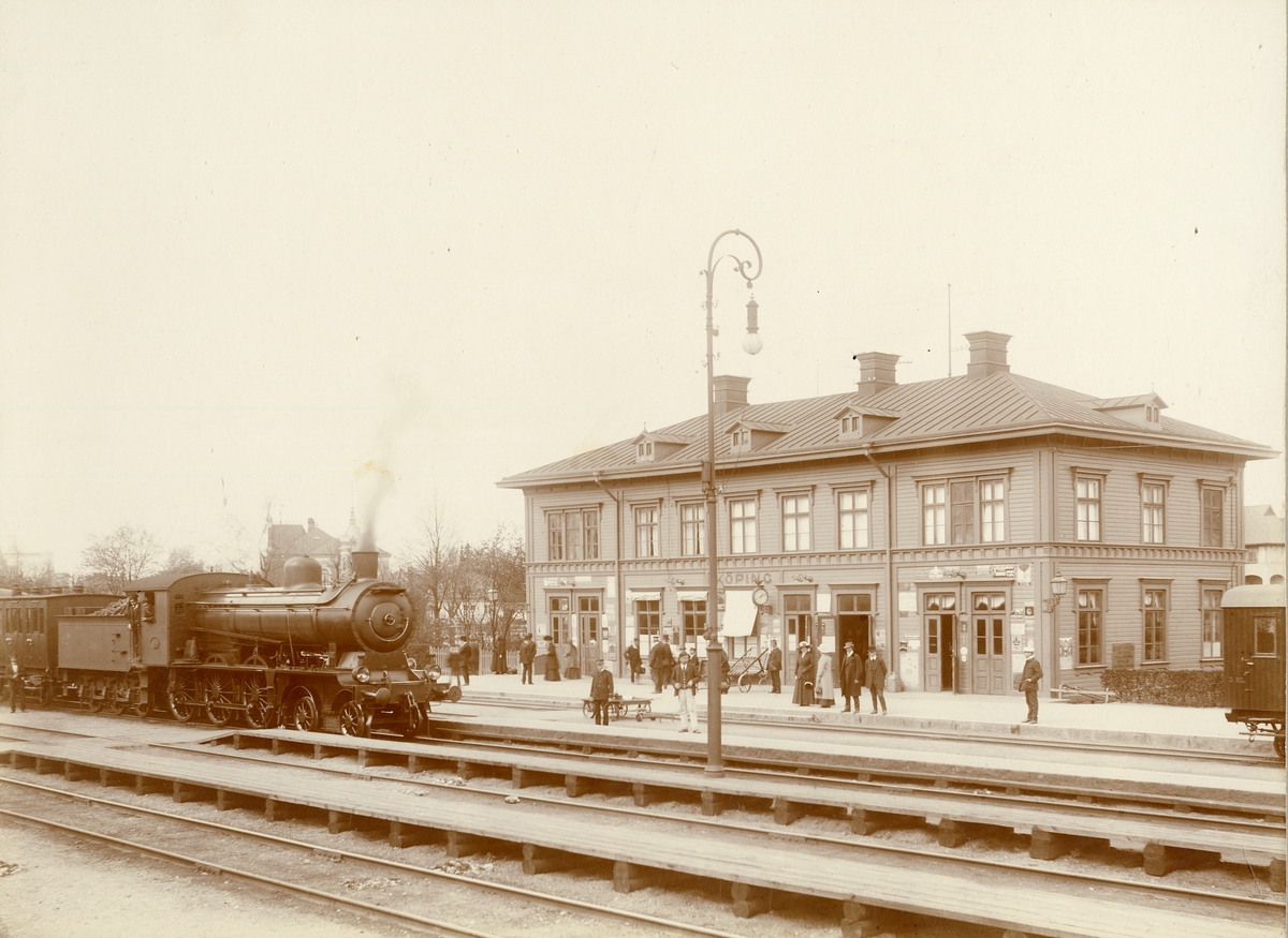 Titel: SWB H3 58 framför stationshuset i Köping 1913.