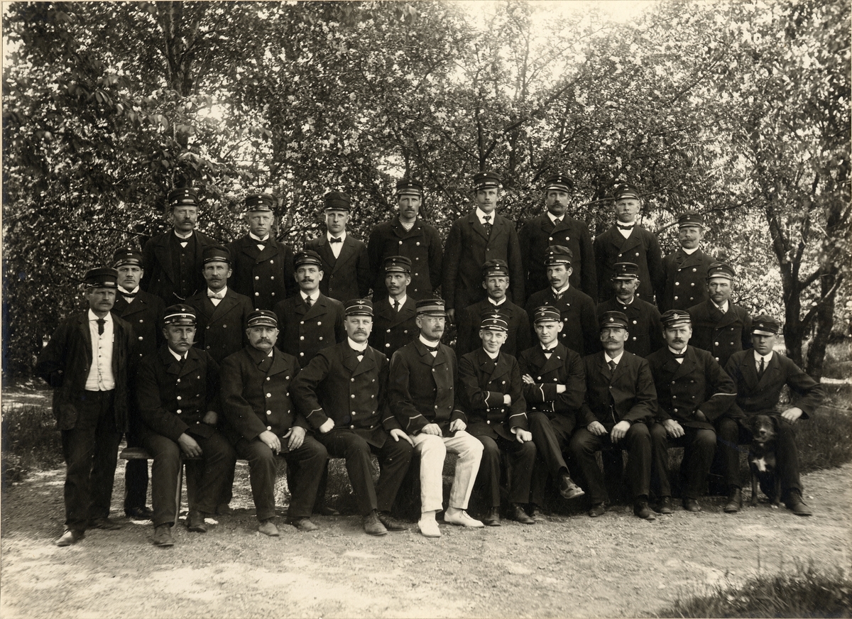 Titel: Tf. inspektor -sts Johan Gottfrid Öhrnberg med personal i Kolbäck 1913