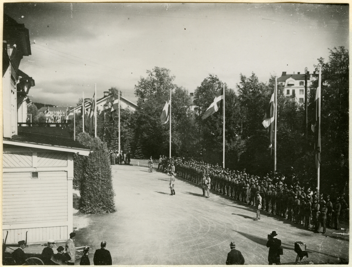 Östersund station under utställningen 1920. Statens Järnvägar, SJ.