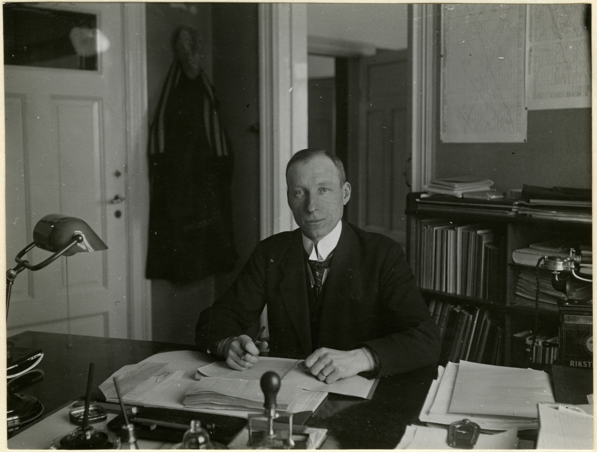 Östersund station. Statens Järnvägar, SJ. 13 trafikinspektörexpeditionen år 1923. Byråassistent, Bra B.E.M. Arell.