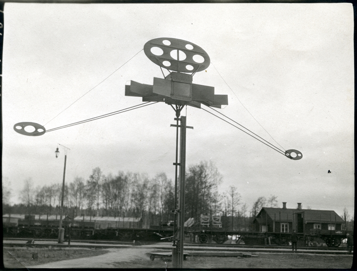 Öxnered station. Bergslagernas Järnväg, BJ.Skivsignal.