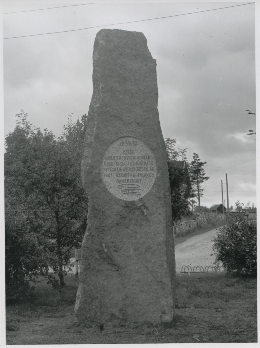 Minnessten i Jokmokk över inlandsbanans byggnad, med dåvarande kronprins Gustav Adolfs namnteckning.