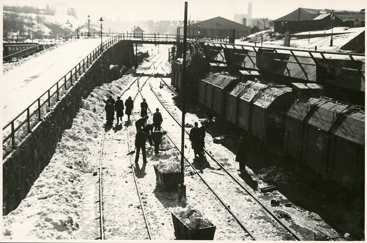 Titel: Bangården vid Stockholm Östra inför elektrifieringen.