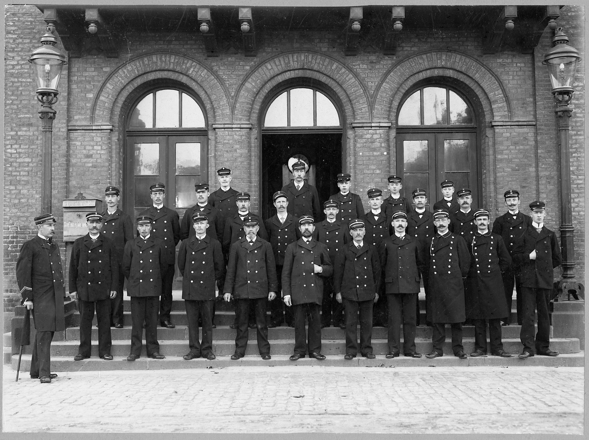 Arnold Ludvig Nilson, Stationsinspektor vid Landskrona & Helsingborgs Järnvägar, L&HJ med ytterpersonal i Landskrona 1903.