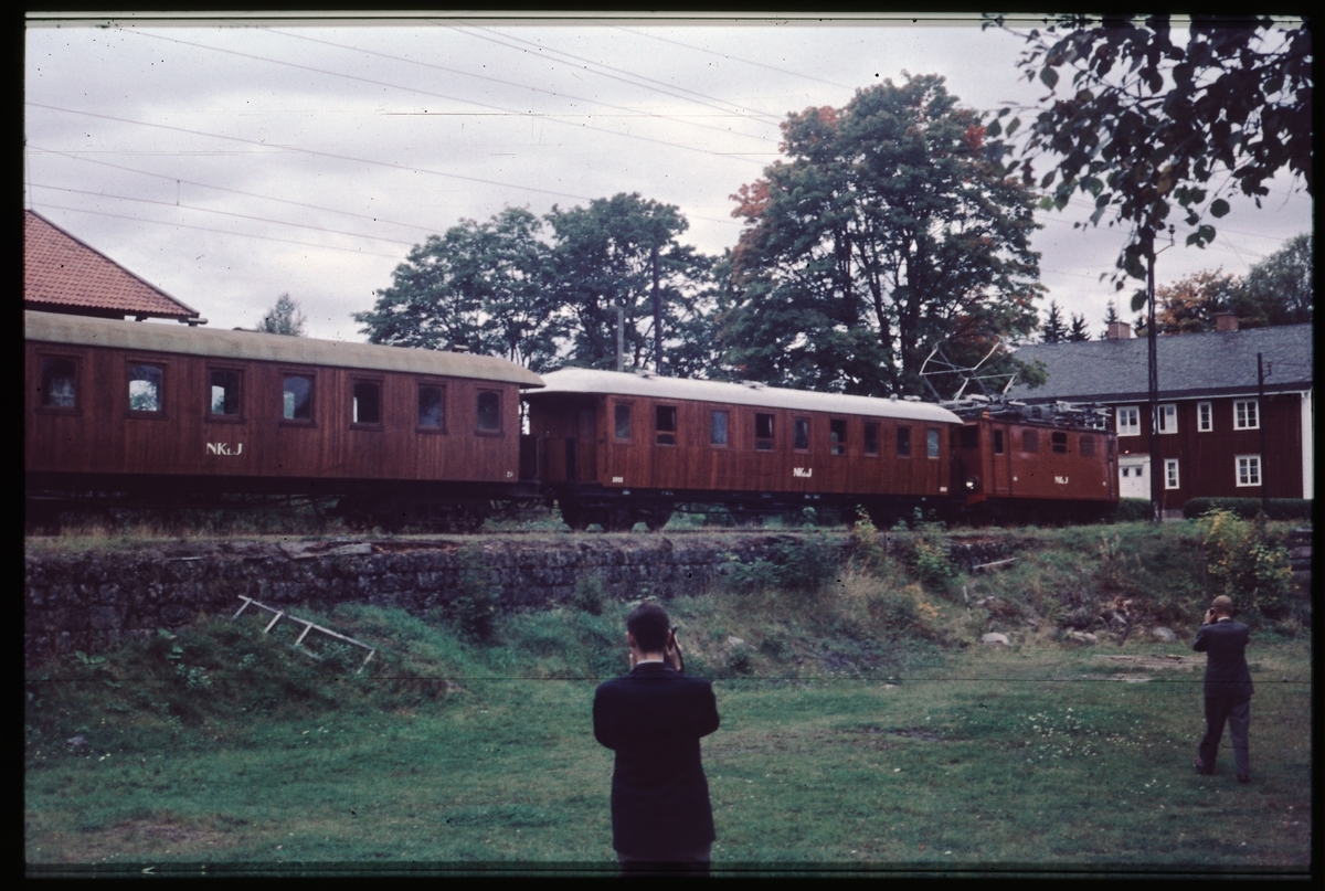 NordmarkKlarälvens Järnvägar, NKlJ ellok 41 med personvagnar vid Motjärnshyttan på sträckan mellan Stjälpet och Sundsjön.