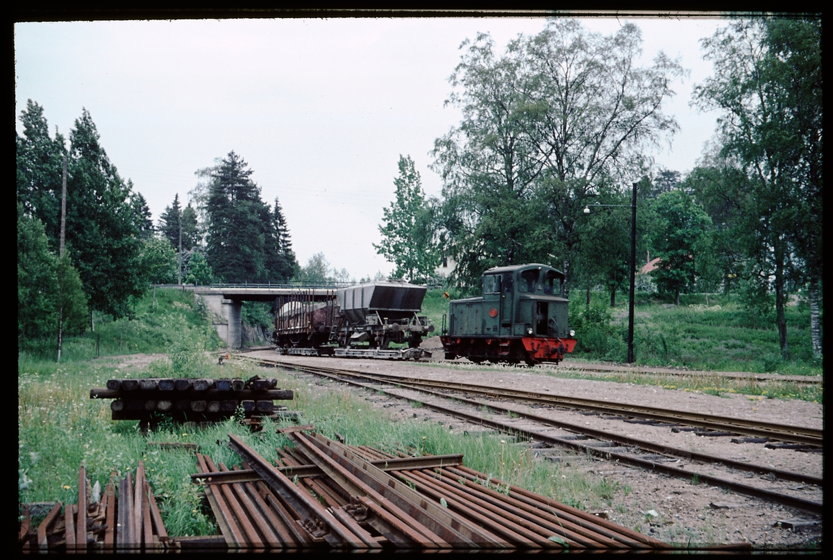 Hällefors Bruk AB, HBA Lokomotor med normalspårsvagnar på överföringsvagnar.