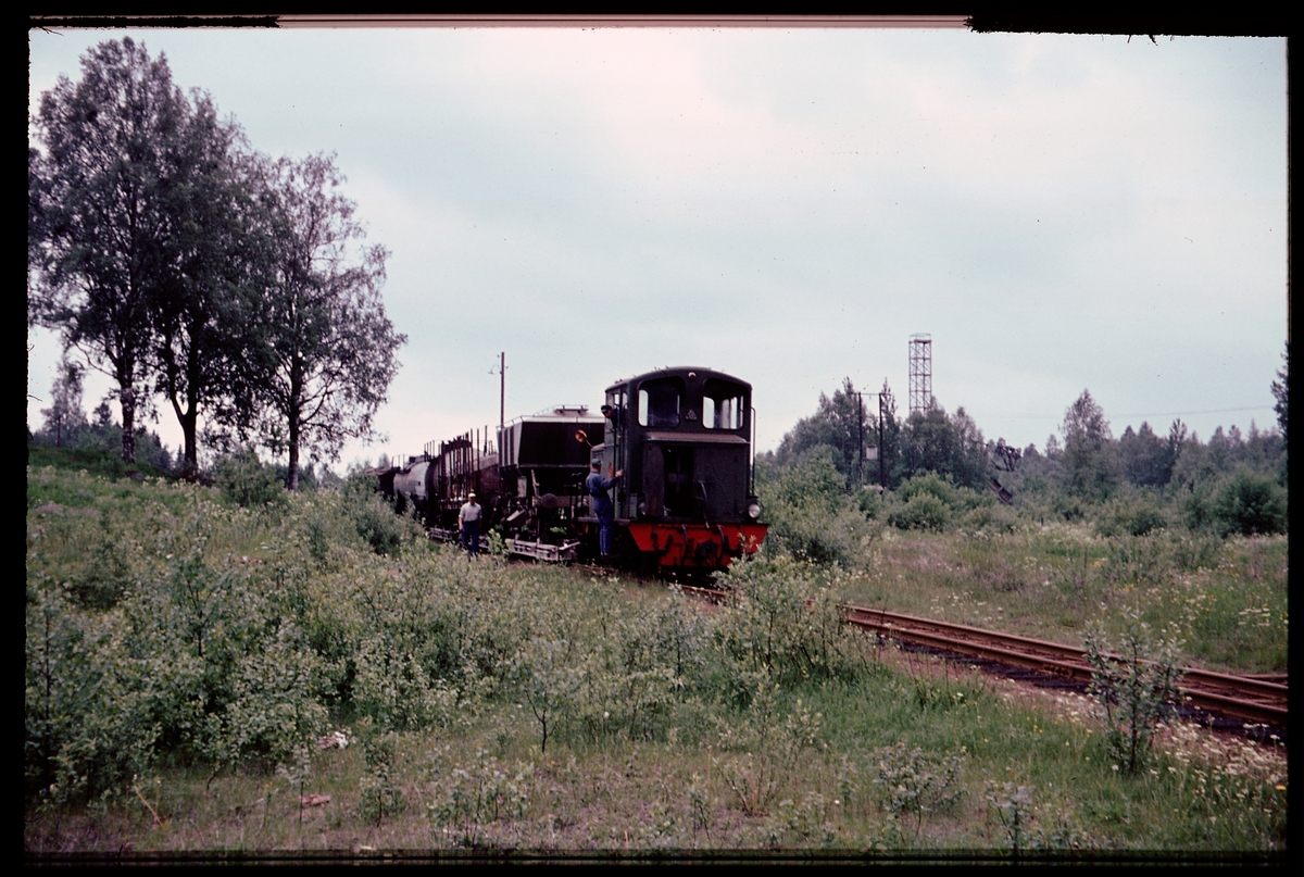 Hällefors Bruk, HBA Lokomotor med normalspårsvagnar på överföringsvagnar.