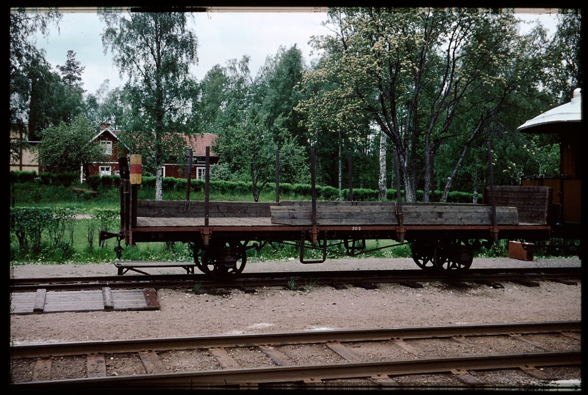 Titel: Obromsad flakvagn.BLJ Byvalla Långshyttans Järnväg.
