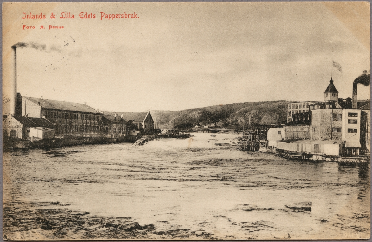 Inlands och Lilla Edets Pappersbruk på varsin sida om Göta älv.