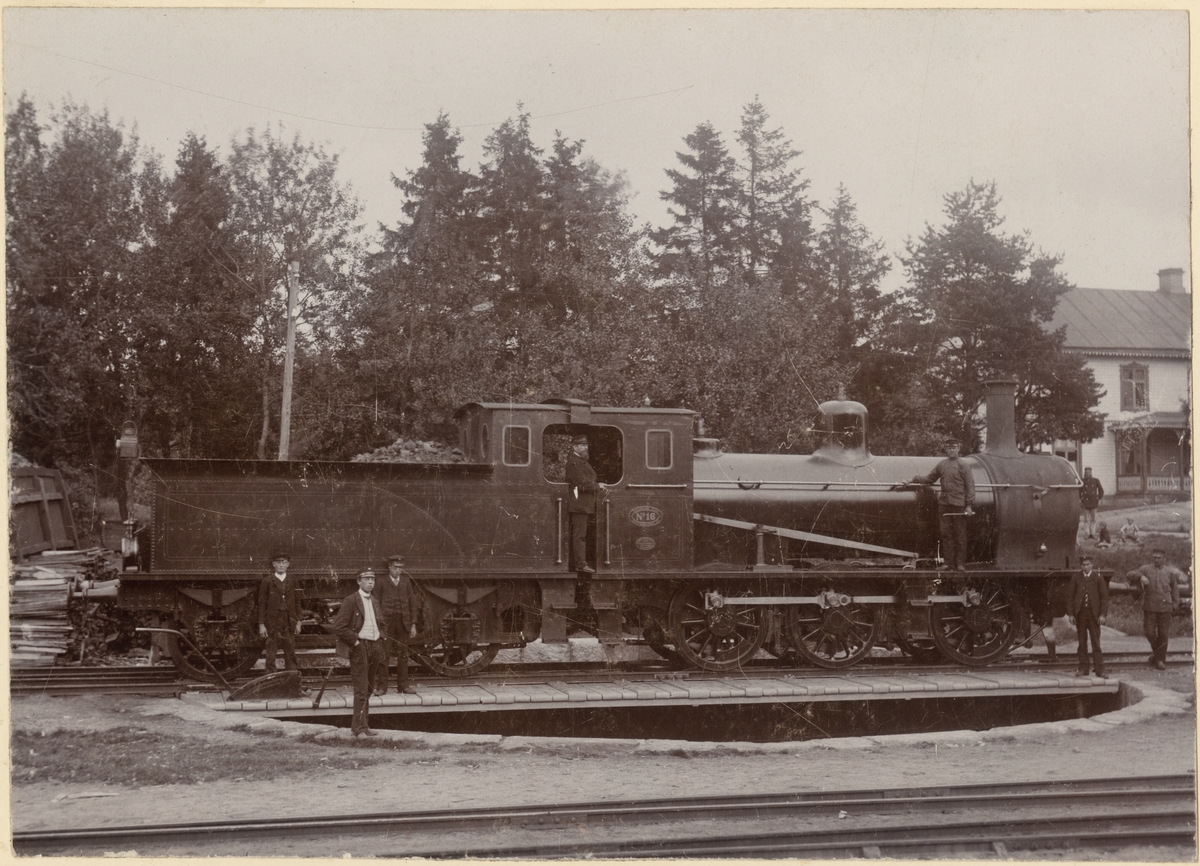 Oxelösund - Flen - Västmanlands Järnvägar, OFWJ K 16 på vändskivan i Oxelösund 1894.