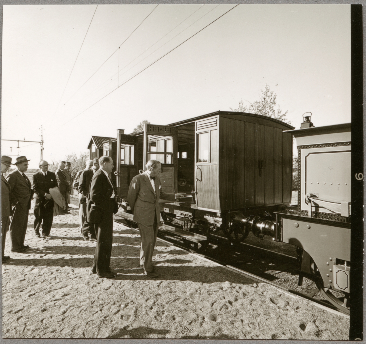 Från Trafikaktiebolaget Grängesberg - Oxelösunds Järnvägar, TGOJ:s styrelseresa maj 1956. Köping - Hults Järnväg, KHJ C 35 personvagn.
