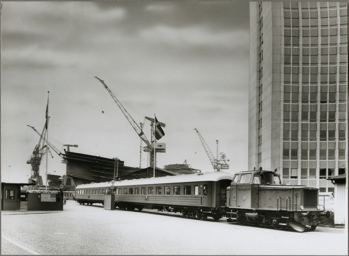 Trafikaktiebolaget Grängesberg - Oxelösunds Järnvägar, TGOJ personvagn vid Kockums huvudkontor.