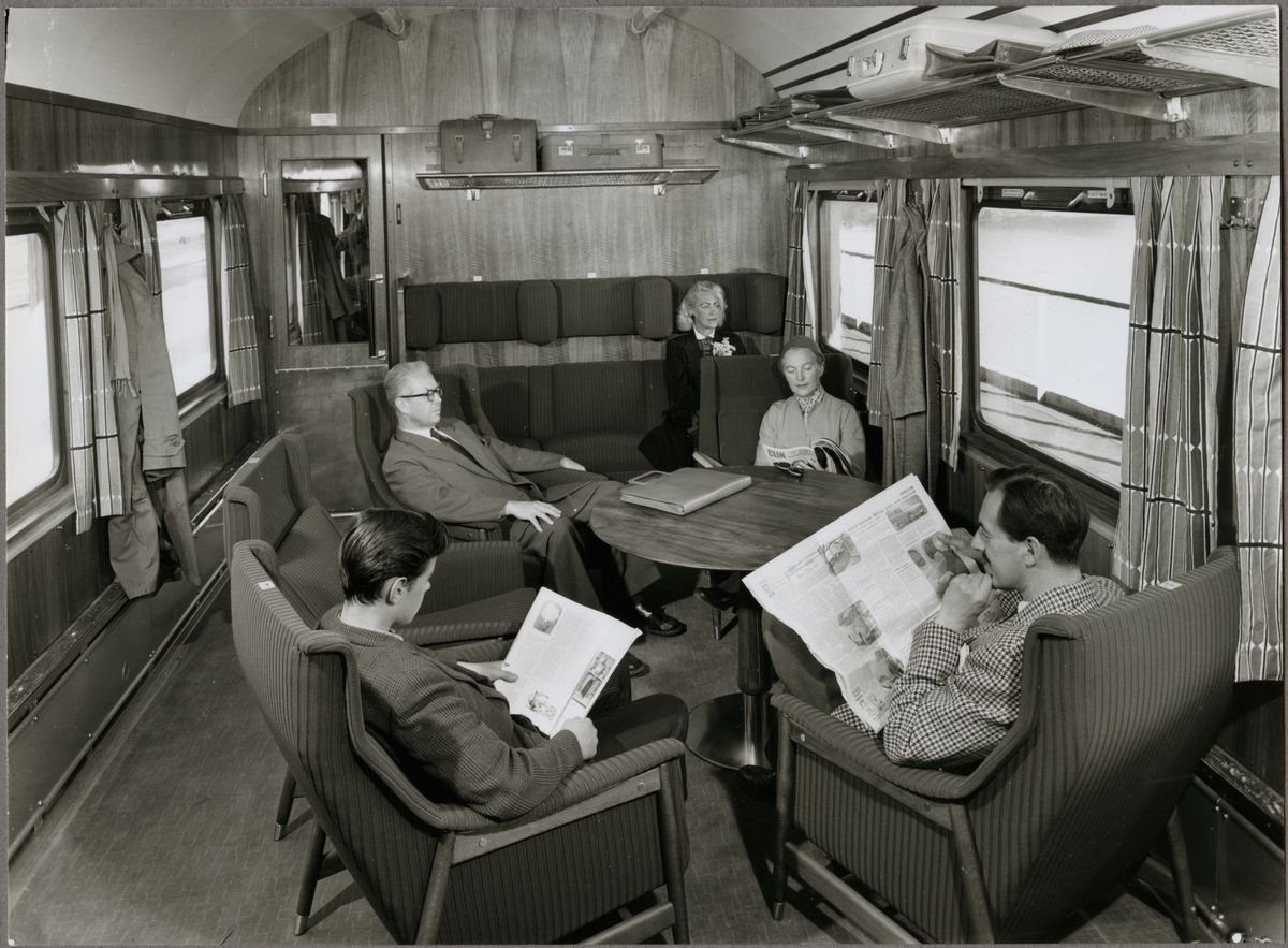 Interiör av en Trafikaktiebolaget Grängesberg - Oxelösunds Järnvägar, TGOJ personvagn.