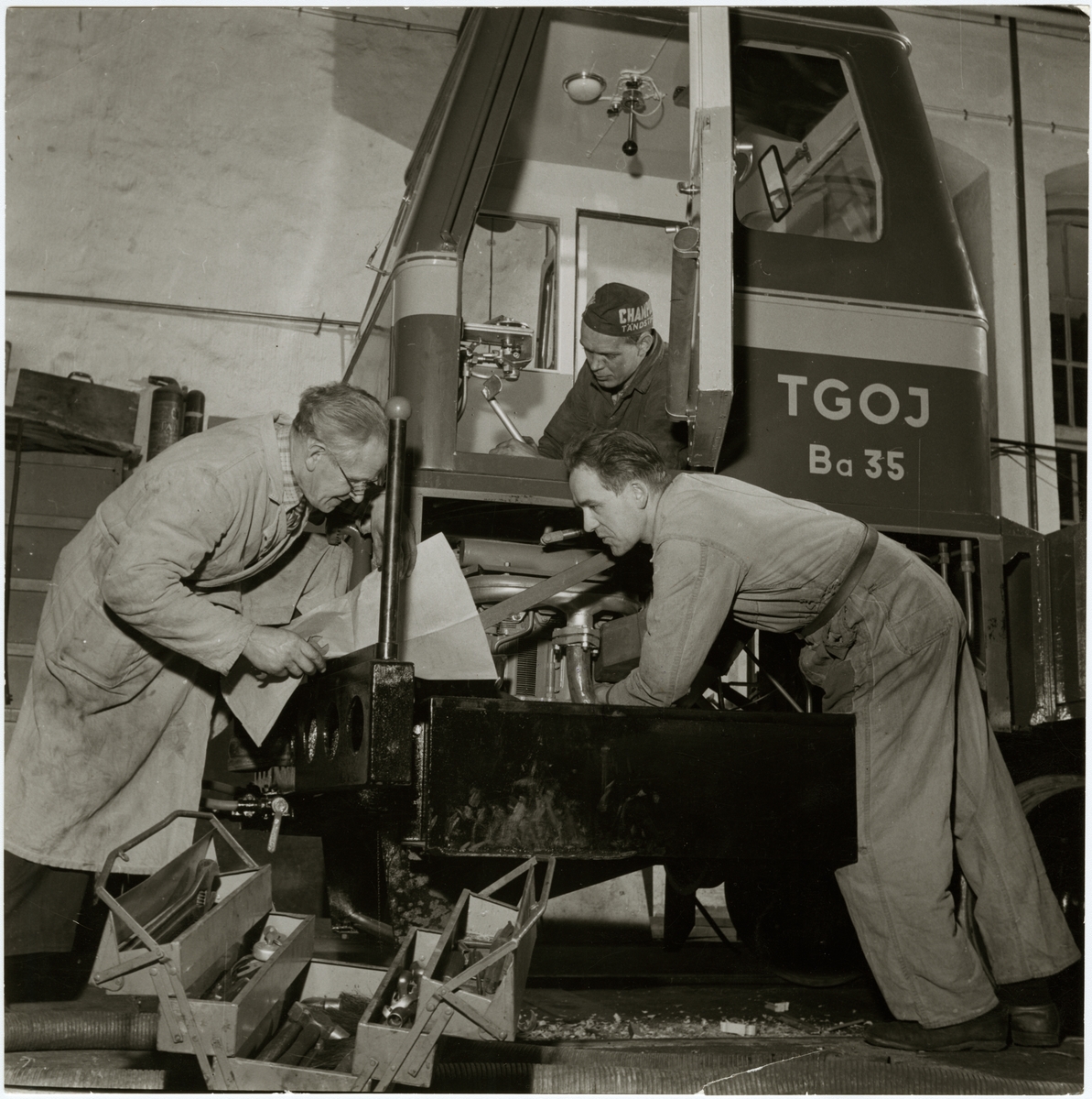Trafikaktiebolaget Grängesberg - Oxelösunds Järnvägar, TGOJ Ba 35 i verkstaden.
