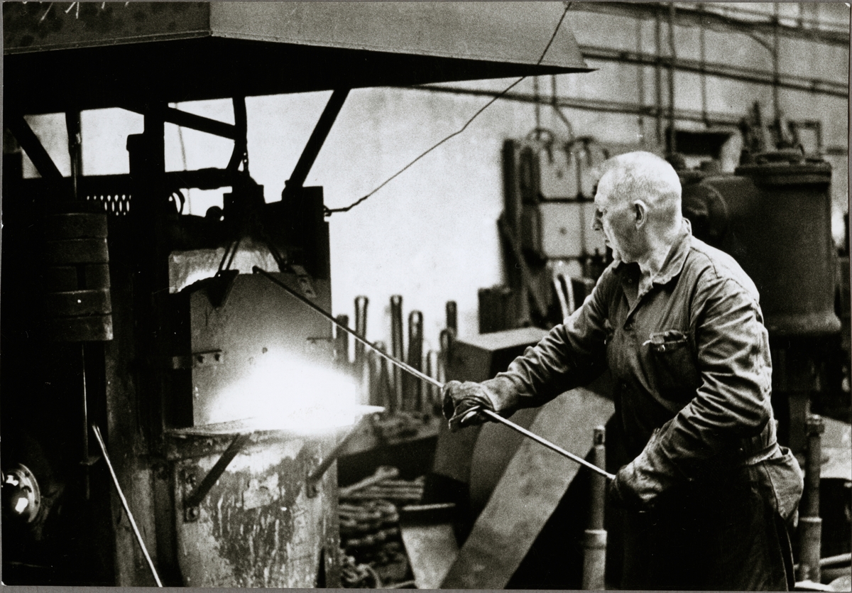 Tillverkning av bärfjäder i Trafikaktiebolaget Grängesberg - Oxelösunds Järnvägar, TGOJ verkstad i Kopparberg.