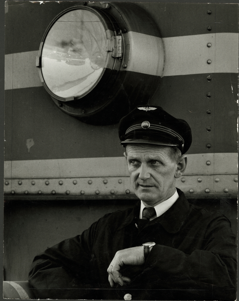 Lokförare framför Trafikaktiebolaget Grängesberg - Oxelösunds Järnvägar, TGOJ Ma 404.