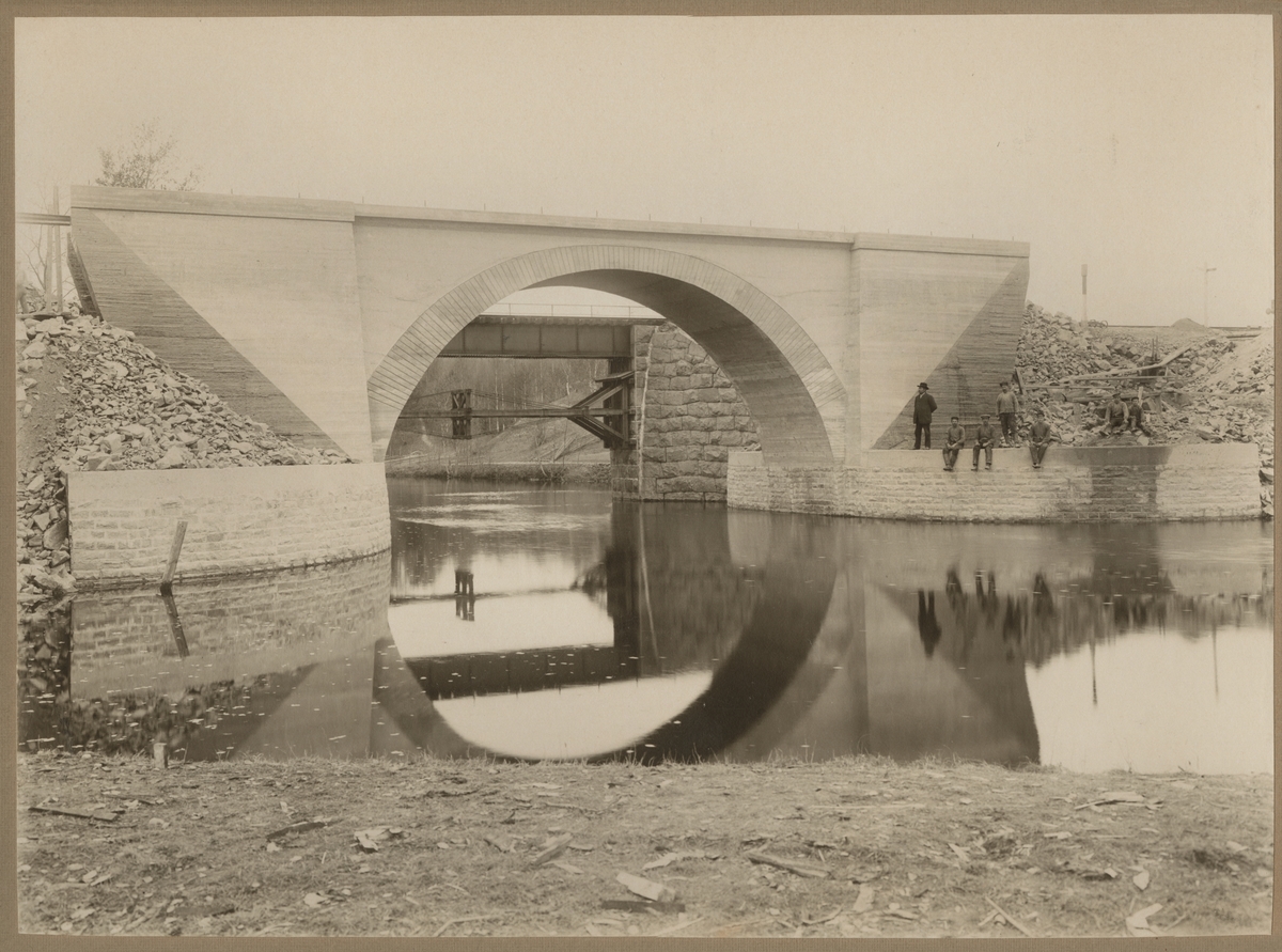 Titel: Järnvägsbro byggs över Storån på linjen mellan Storå och Vasselhyttan.