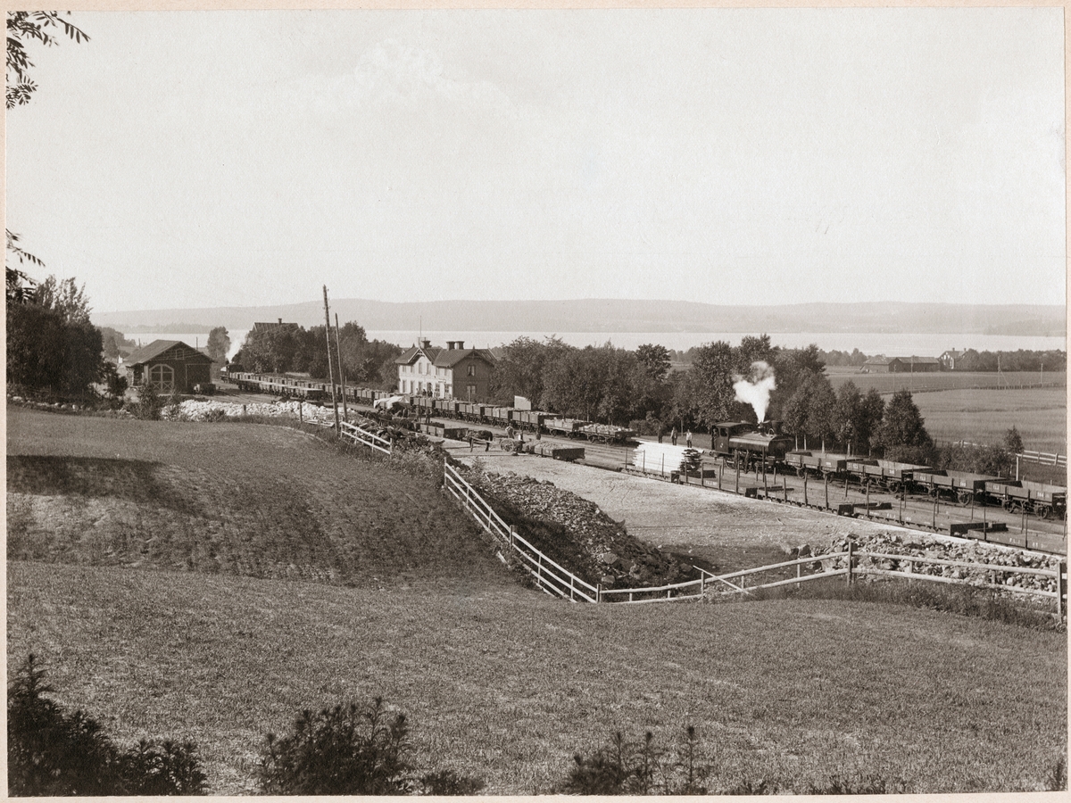 Storå station med Frövi - Ludvika Järnväg, FLJ malmvagnar och ett sadeltanklok.