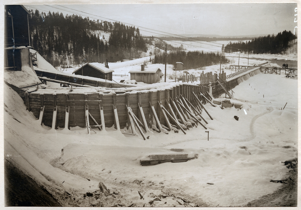 Vattenrenna för överflödsvatten vid järnvägsbron över Piteälven vid Sikfors på linjen mellan Piteå och Älvsbyn.