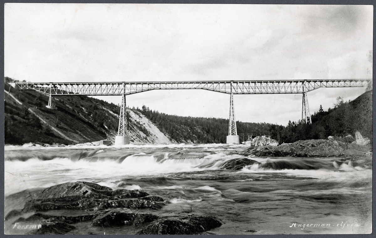 Titel: Järnvägsbro över Ångermanälven vid Forsmo.