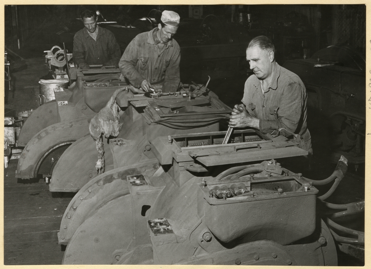 Tillverkning och revision av fordonsdelar i, trafikaktiebolaget Grängesberg - Oxelösunds Järnvägar, TGOJ, verkstad.