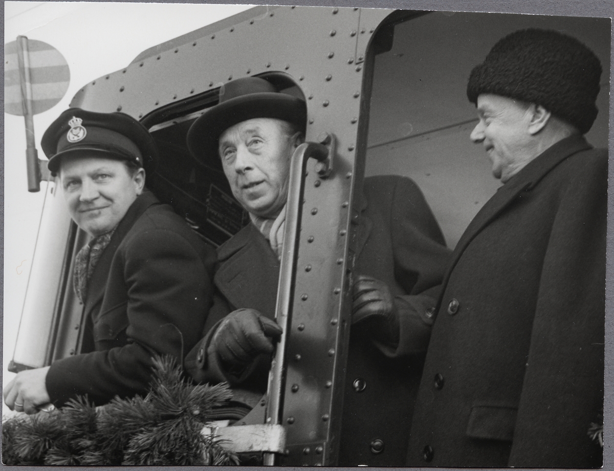 Titel: På loket till första eltåget på linjen mellan Söderhamn - Hudiksvall.
