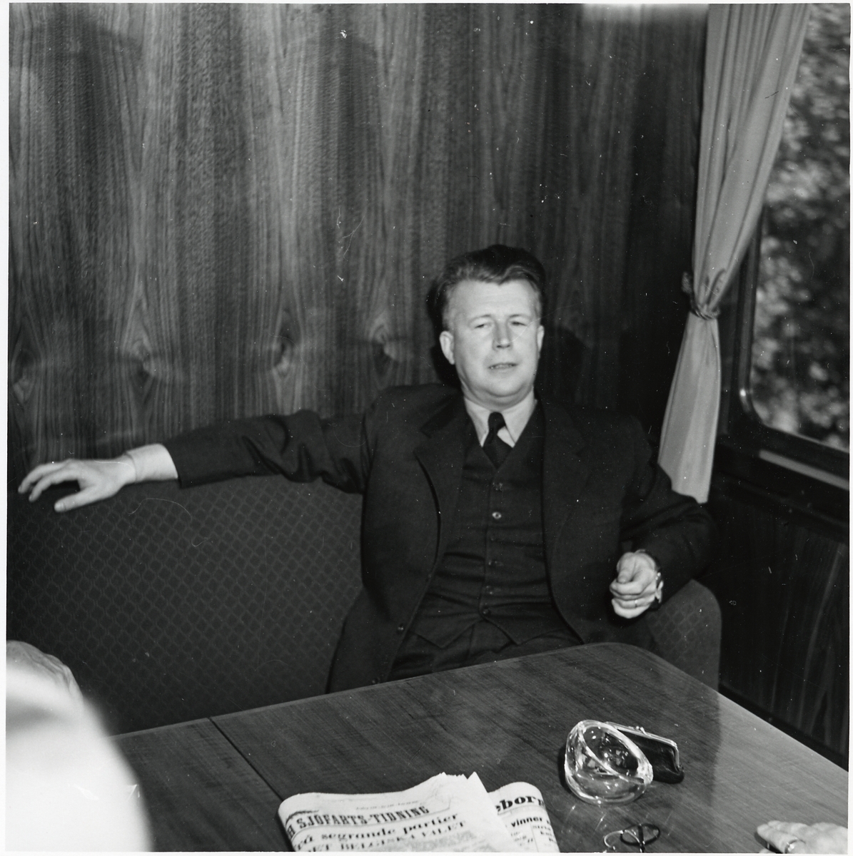Titel: Landshövding Per Nyström ombord på Första eltåget.