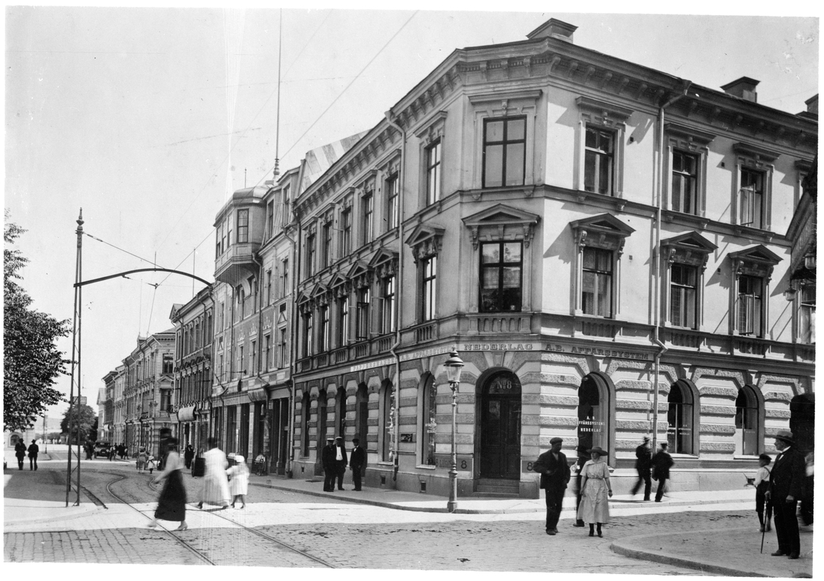 Sjögatan med spårkurvan mot Hamntorget, i Sundsvall.
