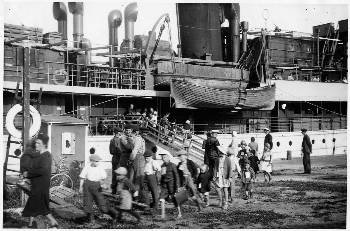 Det finska fartyget S/S Ariadne ankommer till Holmsund med finsk barntransport.