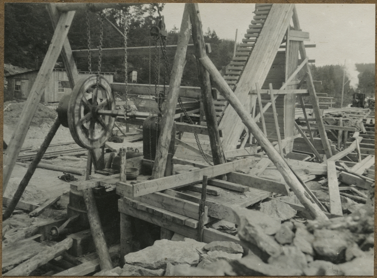 Dubbelspårsbyggnaden mellan Alingsås - Olskroken. Stenkross monteras öster om tunnlarna. På linjen mellan Noresund och Floda.