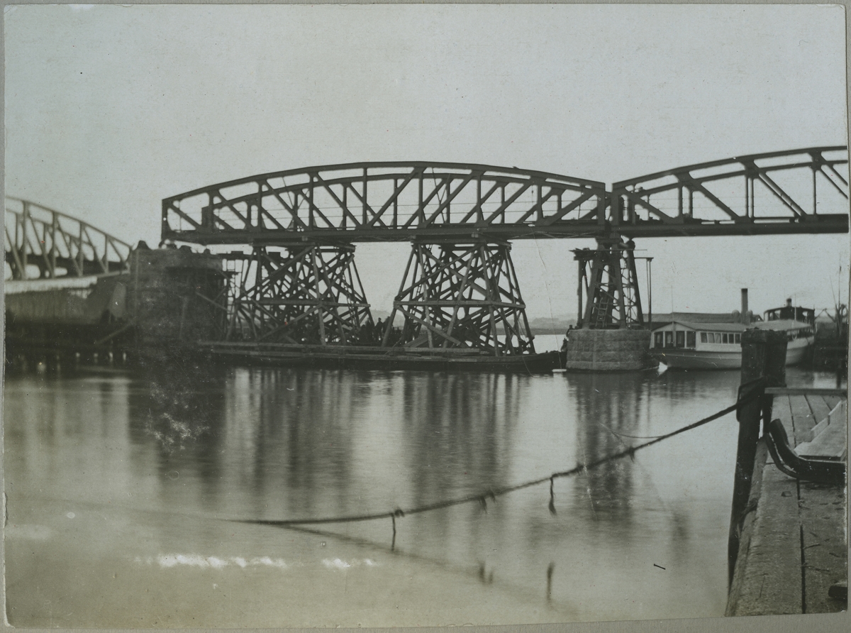 Brobygge över Göta Älv, andra spannet under uppläggning.
