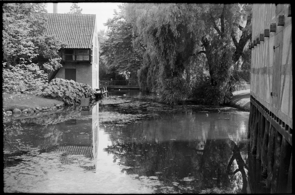 Vattendrag vid Den Gamle By, friluftsmuseét i Århus.