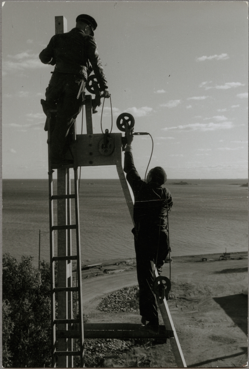 Kontaktledningsmontage under elektrifieringen av Trafikaktiebolaget Grängesberg - Oxelösunds Järnvägar, TGOJ:s banor.