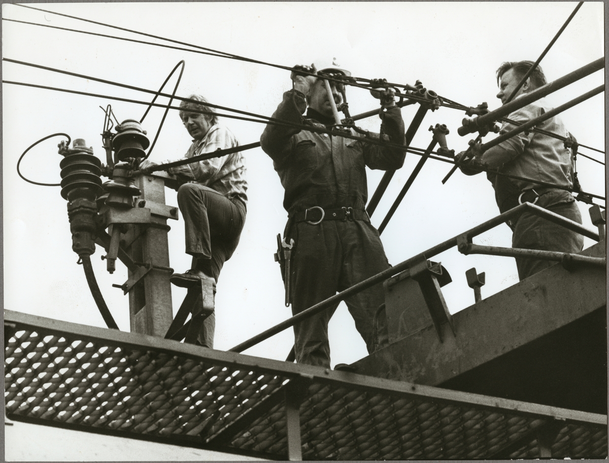 Installation av kontaktledning av Rolf Andersson, Henry Öhlin och Sven-Olof Pettersson.