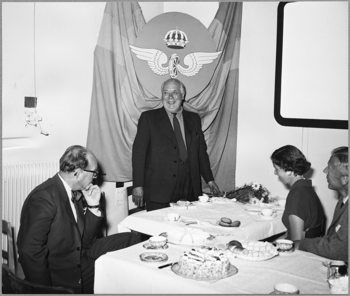 Ingenjör Per Martin Östner avtackas med kaffe och tårta. Statens Järnvägar, SJ.