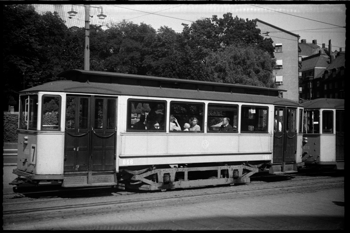 Aktiebolaget Stockholms Spårvägar, SS B19 866 vid hållplats på linje 7, mellan Norrmalmstorg och Djurgården.