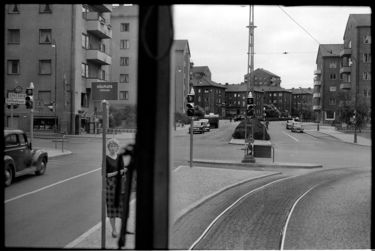 Resenär vid hållplats på Helsingborgs Stads Spårvägar, HSS.