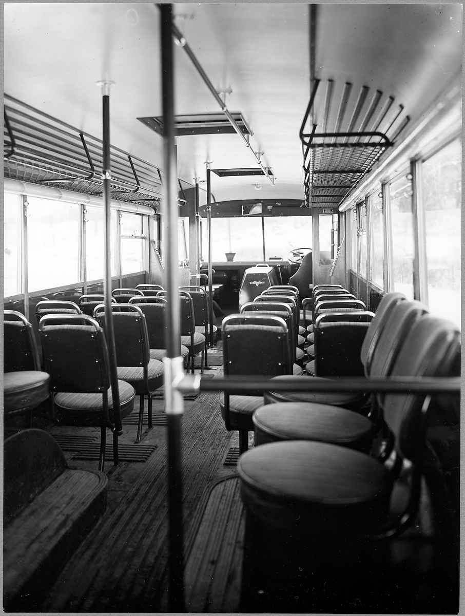 Titel: Interiör från en buss. Stockholm-Roslagens Järnväg, SRJ.