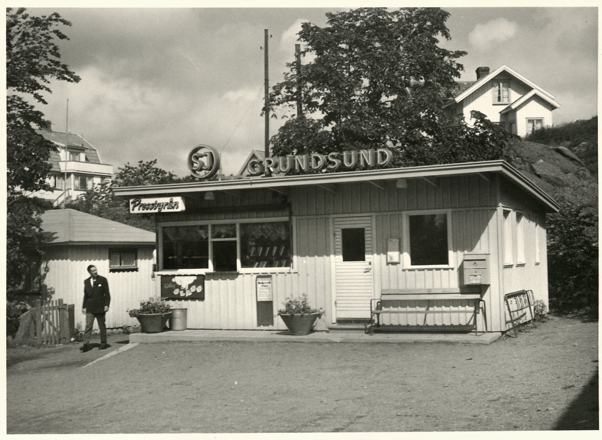 Statens Järnvägar, SJ busshållplats med Pressbyrån i Grundsund.