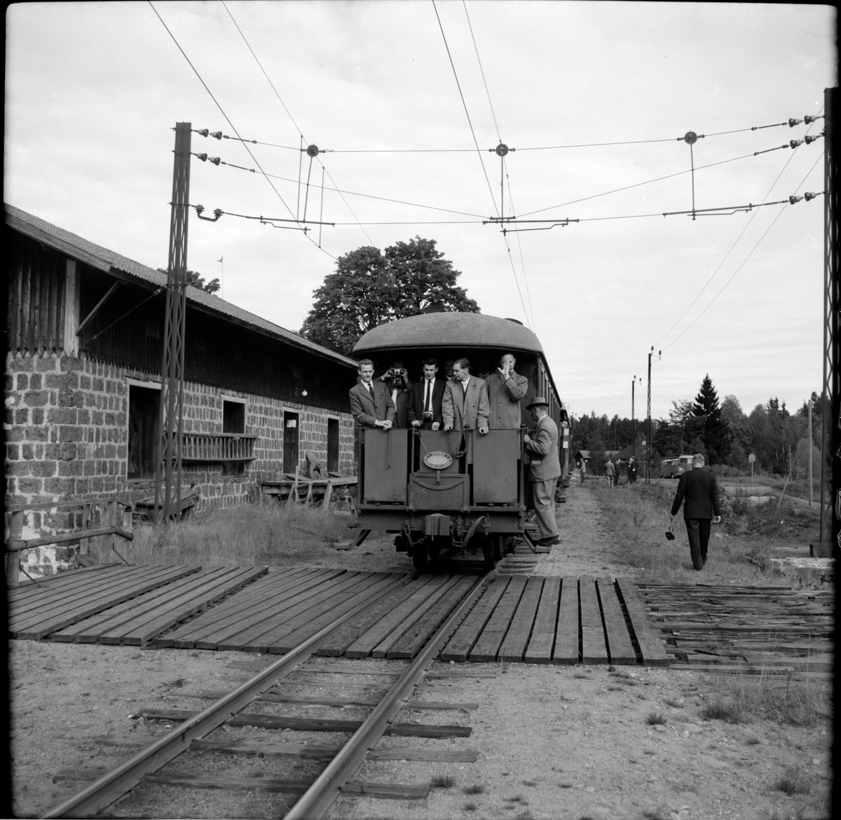 På personvagnen märkt Svenska Järnvägsklubben, SJK ses besökare från Svenska Järnvägsklubben, SJKs höst resa på NKIJ.
