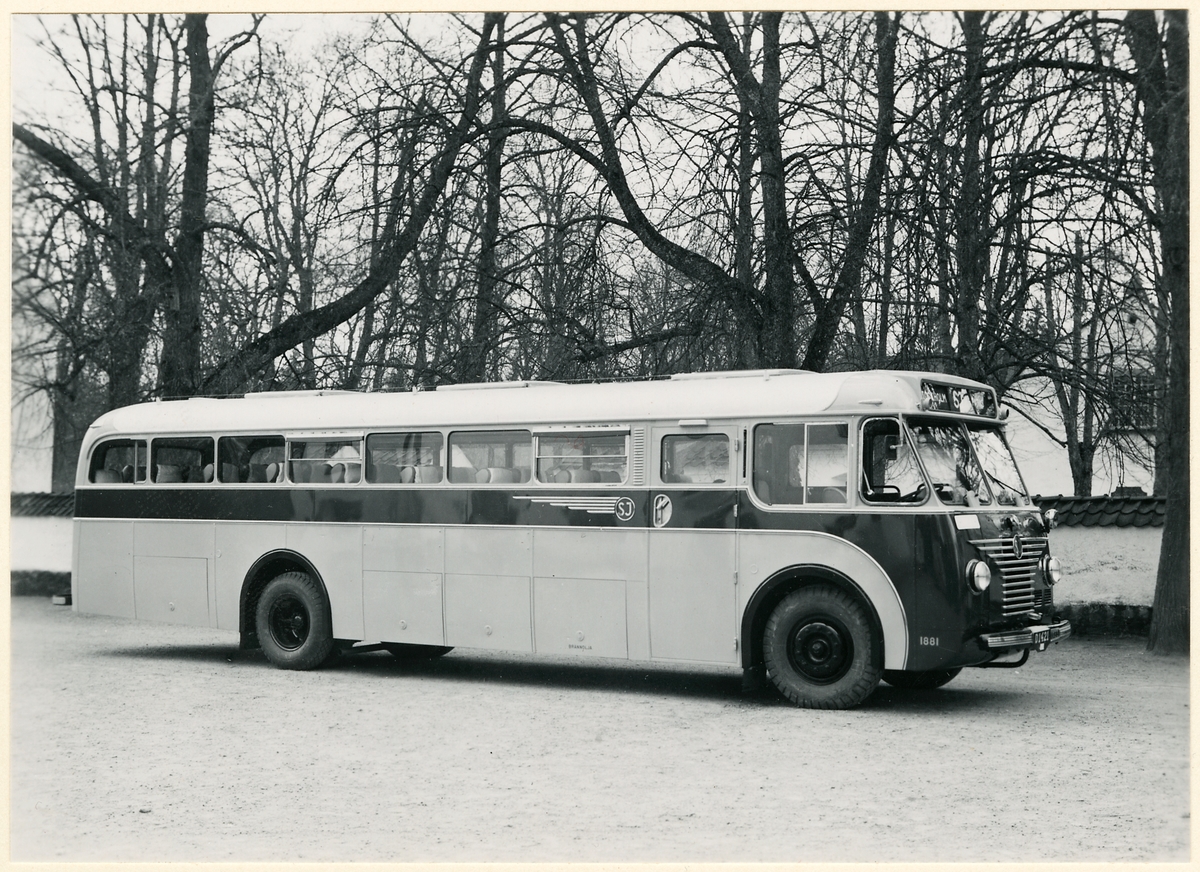 Komplettering Peter Ödén. Statens Järnvägar, SJ Buss 1881 Scania-Vabis B 63 från 1950 med kaross från Svenska Karosseriverkstäderna i Katrineholm.