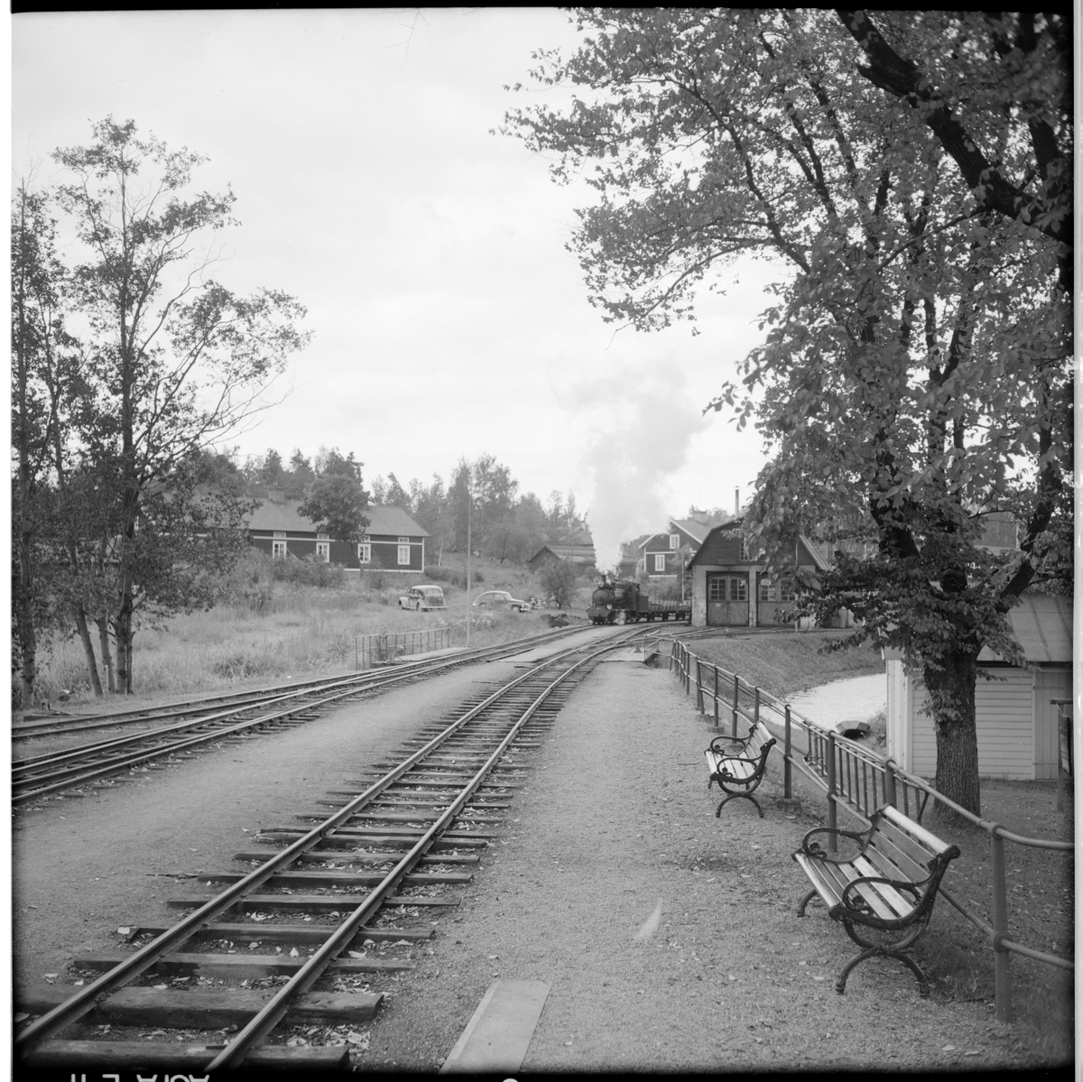 Byvalla - Långshyttans Järnväg, BLJ lok 5 "Thor" i trafik bredvid lokstallet i Långshyttan.