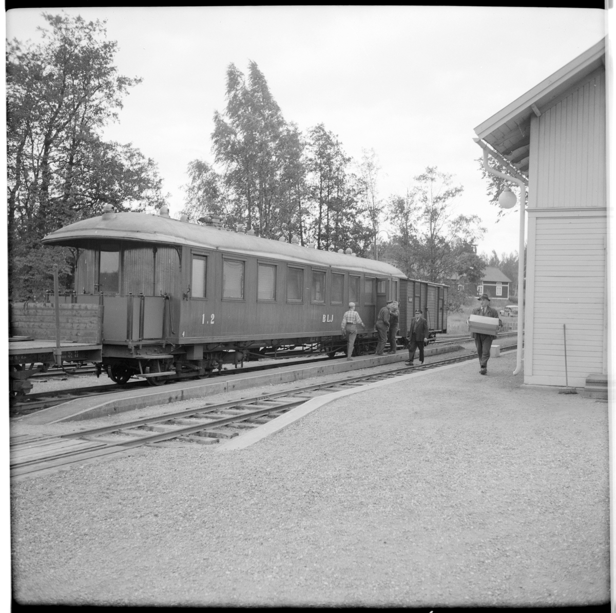 Personal på spåret bredvid Byvalla - Långshyttans Järnväg, BLJ 1o2 personvagn 4.